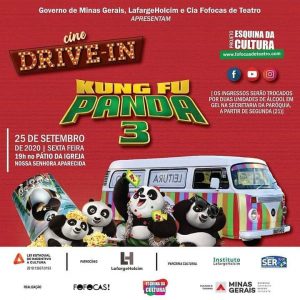 O Cine Drive-in será nesta sexta-feira, 25 de setembro, às 19:00 horas no pátio da igreja de Nossa Senhora Aparecida, no bairro Josefina Coelho. O filme que será projetado é “Kung Fu Panda 3” e promete agradar o público de todas as idades.