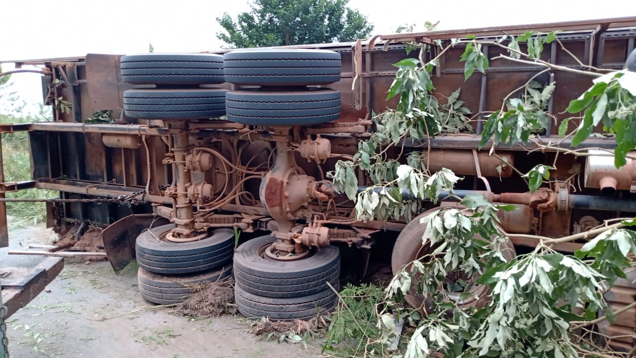O veículo estava lateralizado as margens da rodovia em meio a vegetação e apoiado por uma árvore de grande porte que veio se quebrar com o impacto.