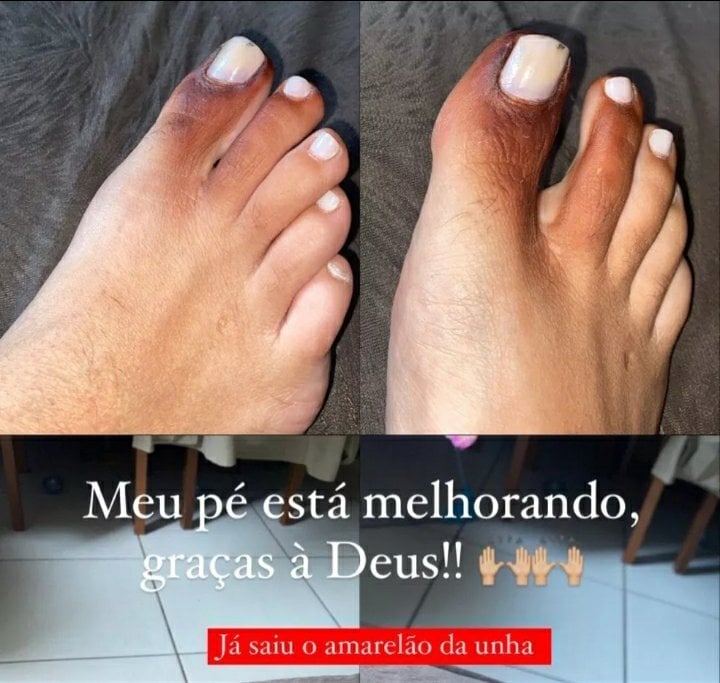 “Matei ele, calcei o tênis novamente e segui com o meu dia. Quando eu cheguei em casa 19h da noite, quando eu tirei um tênis, vi que o meu pé estava desse jeito! Eu entrei em desespero total!! Comecei a gritar! A pedir socorro! Minha mãe me colocou no box, comecei a lavar o pé com sabão e nada dessa “mancha” sair. Liguei para o meu namorado e logo corremos para o hospital”, relatou ela em seu perfil no Instagram.