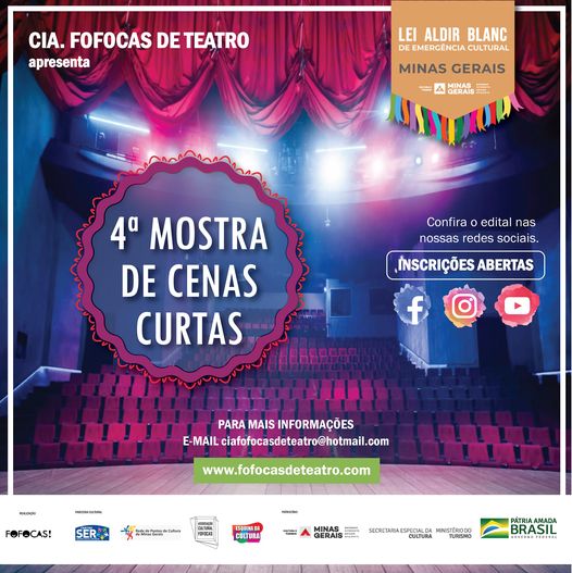A Cia. Fofocas de Teatro, por meio da Lei Aldir Blanc, comunica a abertura das inscrições para a nossa 4ª Mostra de Cenas Curtas.