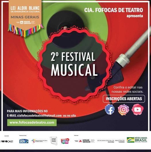 A Cia. Fofocas de Teatro, por meio da Lei Aldir Blanc, comunica a abertura das inscrições para o nosso 2º Festival Musical.