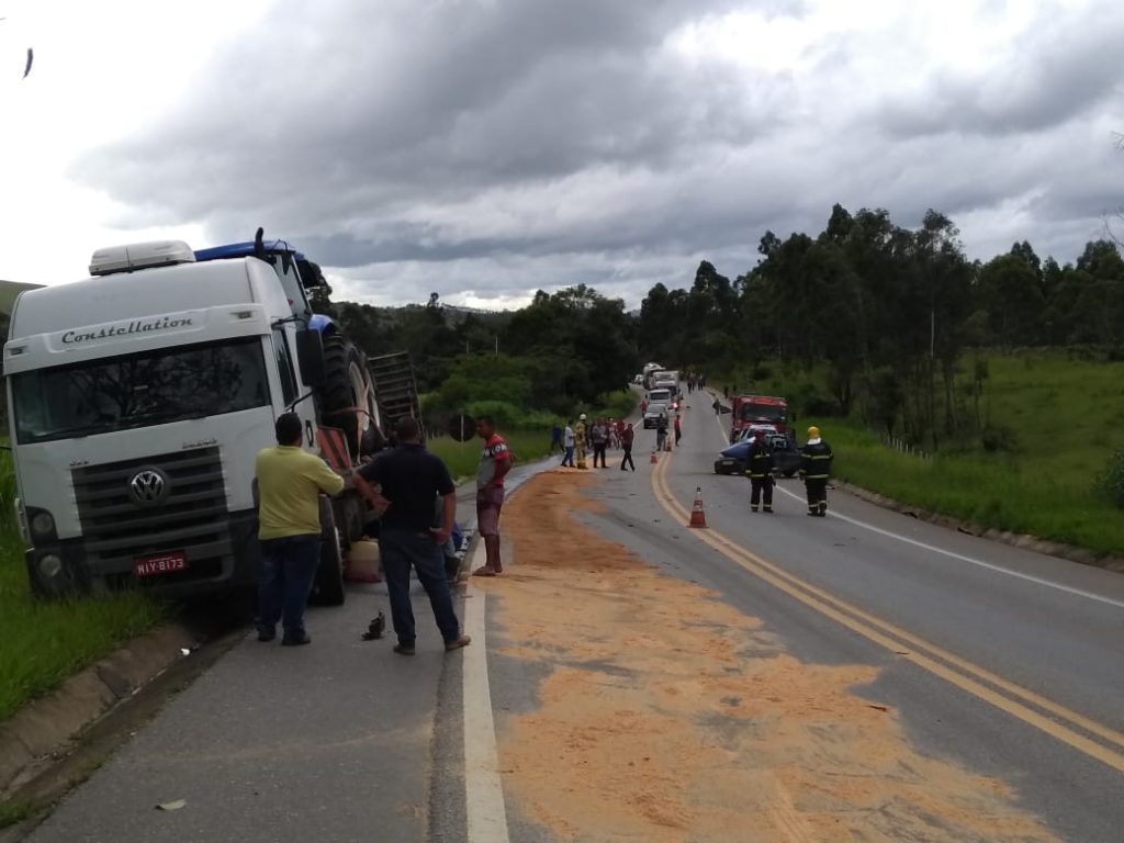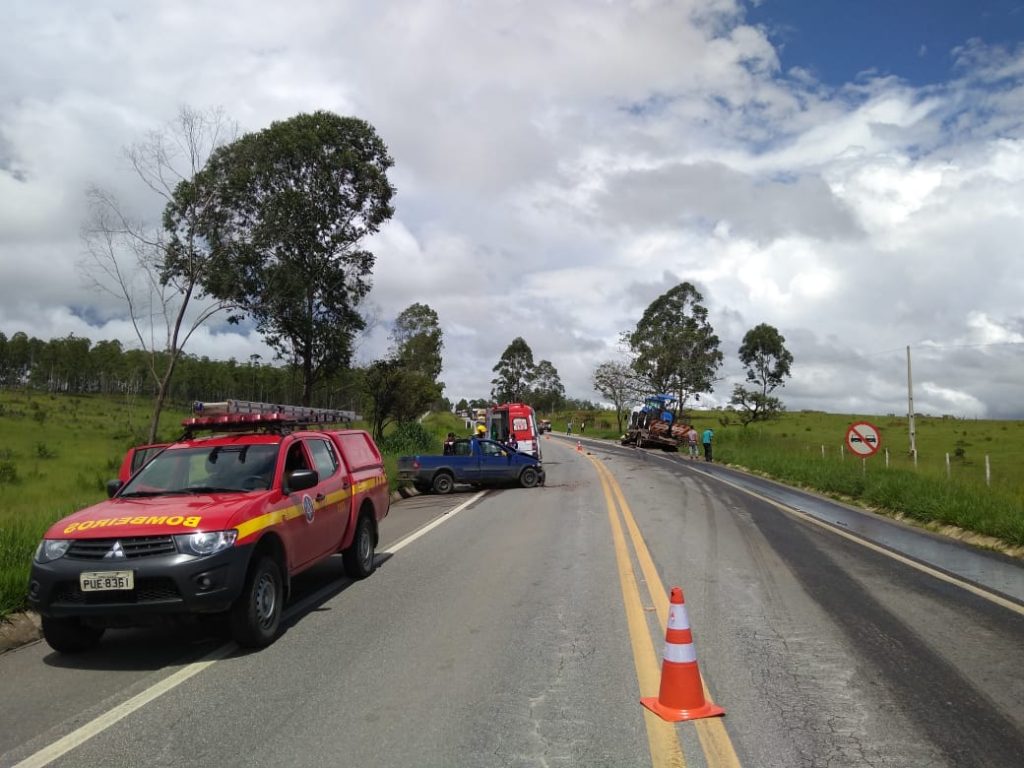 Tarde desta quinta-feira por volta de 15:20h equipes de bombeiros de São João del Rei foram acionados a comparecer na Rodovia BR 265, altura do km 248, proximidade do trevo de Tiradentes onde houve um acidente entre um veículo Fiat Strada licenciado em Ubá que era conduzido por um jovem de 22 anos que seguia no sentido a São João del Rei e que veio a se colidir contra um caminhão Volkswagen modelo Constellation com placas de Três Corações, onde seu condutor de 35 anos nada sofreu.