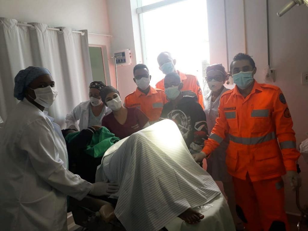 Desta forma chegaram até a entrada da Santa Casa de Misericórdia onde imediatamente efetuaram o acionamento da equipe de Obstetrícia do hospital; entretanto neste intervalo o bebê veio a nascer dentro da prancha( maca) do Corpo de Bombeiros já entrando no corredor do Hospital Santa Casa de Misericórdia onde mãe e bebê foram entregues aos cuidados médicos da equipe de Obstetrícia sendo efetuado os trabalhos finais de parto onde a gestante deu à luz a um menino que nasceu saudável.