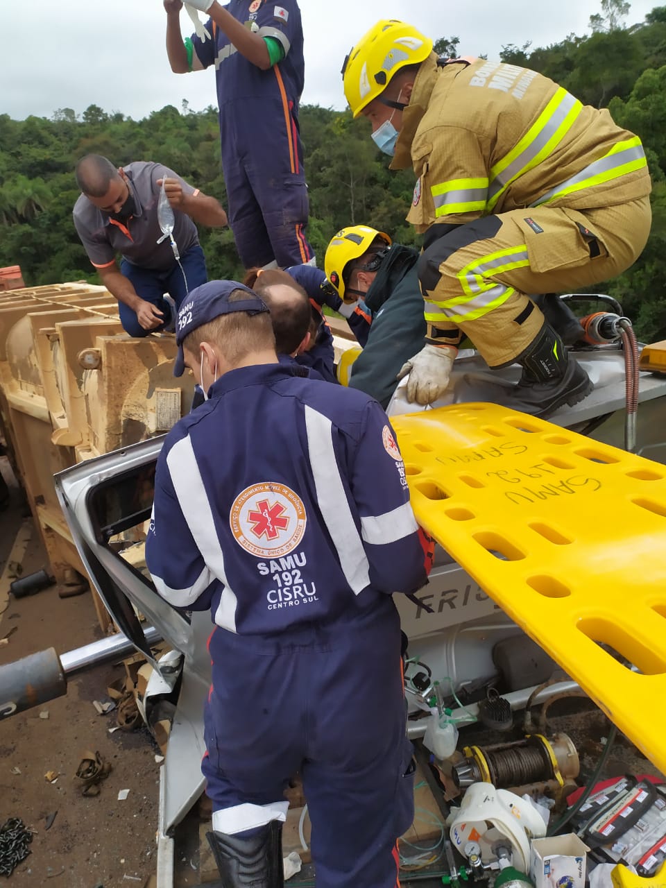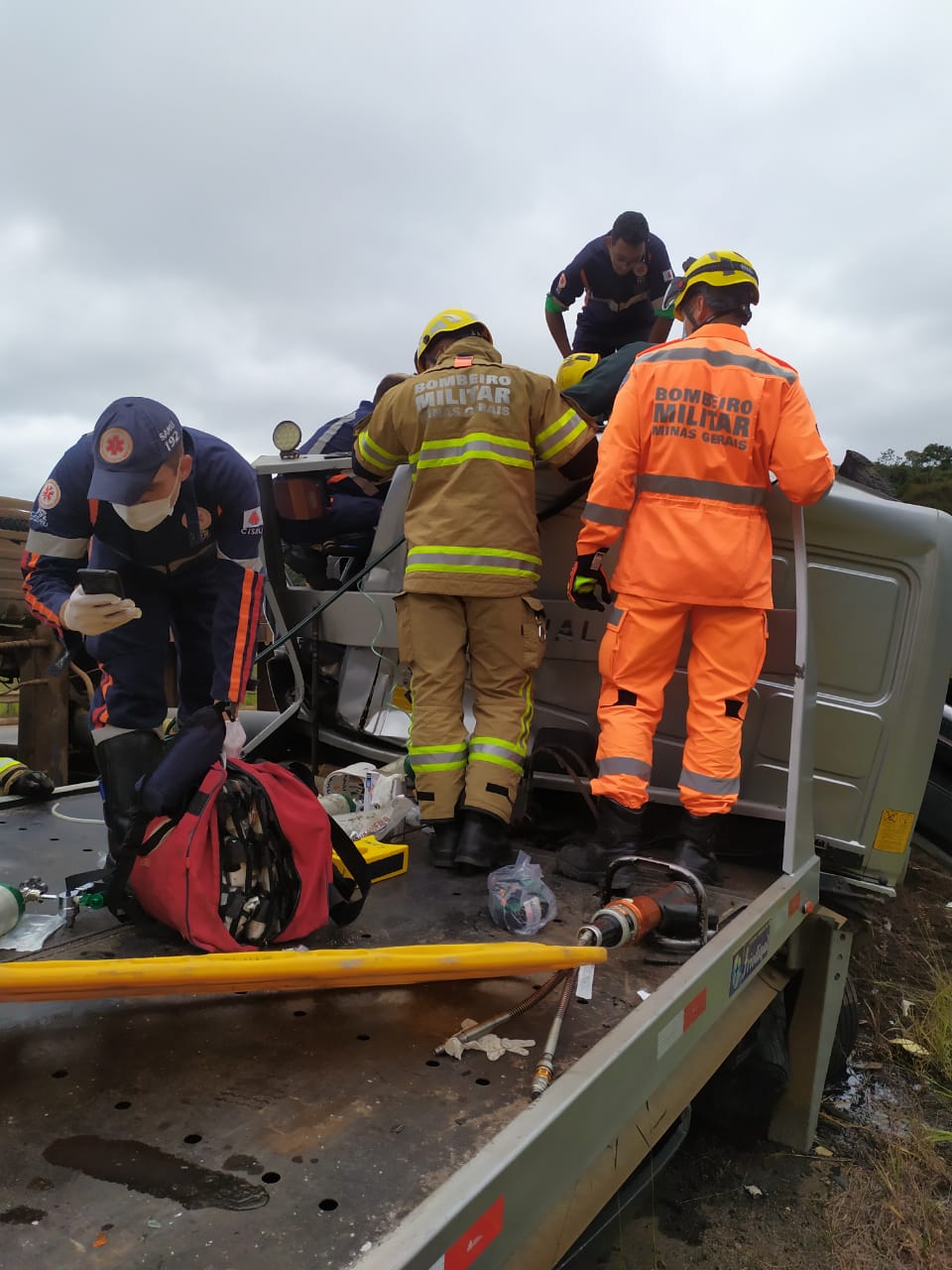 A operação mobiliza equipes dos bombeiros , além da PRE, SAMU e apoio da aeronave Arcanjo 04 do Batalhão de Operações Aéreas dos bombeiros de Belo Horizonte.