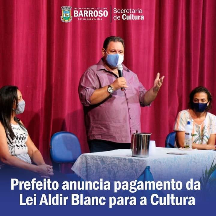Na tarde desta quarta-feira (03) o Prefeito Municipal de Barroso Anderson Geraldo de Paula, juntamente com a Secretária de Cultura e Turismo Edna Américo, anunciaram o pagamento aos artistas, produtores e artesãos de Barroso contemplados pela Lei Federal Aldir Blanc. O pagamento será realizado até a próxima sexta-feira (05).