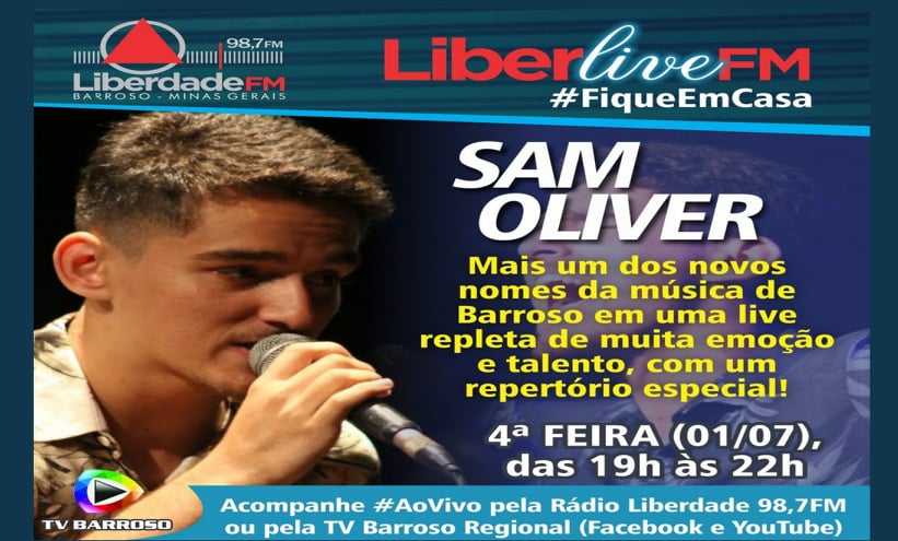 Revejam a 12° Liberlive beneficente com o show de Sam Oliver na Rádio Liberdade de Barroso 98,7 FM, dia 01/07/2020 revejam os links das transmissões ao vivo no You tube e facebook :
