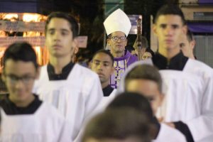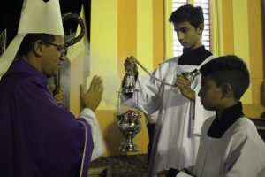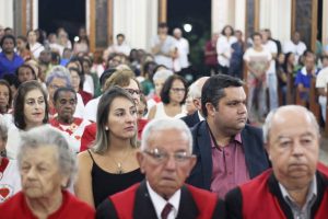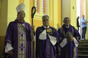 Na noite desta quarta-feira (13), a Paróquia de Sant’Ana, em Barroso, recebeu a visita do bispo da Diocese de São João del-Rei, Dom José Eudes Campos do Nascimento. Em sua chegada à igreja matriz, o bispo foi recebido pela Banda de Música Municipal de Barroso, ao som do Hino de Sant’Ana.