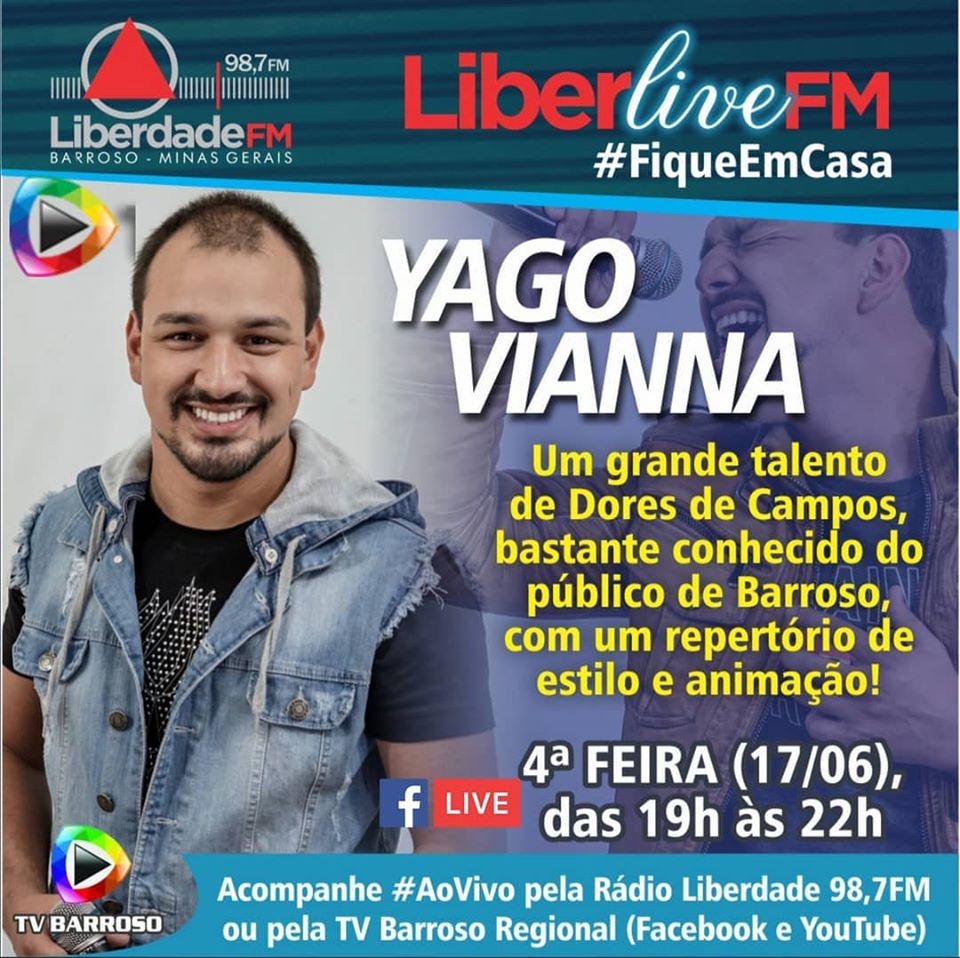 Nesta quarta-feira dia 17/06 tem show com o Cantor YAGO VIANNA yagovianna92 na LiberLive FM TV Barroso a partir das 19:15 curtam e compartilhem: